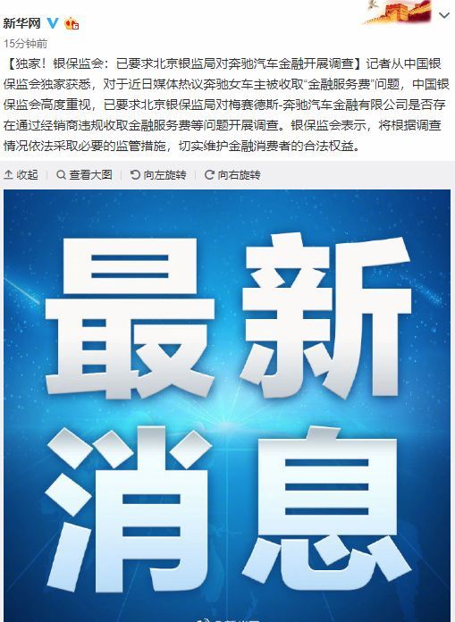 已要求北京銀保監(jiān)局對(duì)奔馳汽車金融開(kāi)展調(diào)查